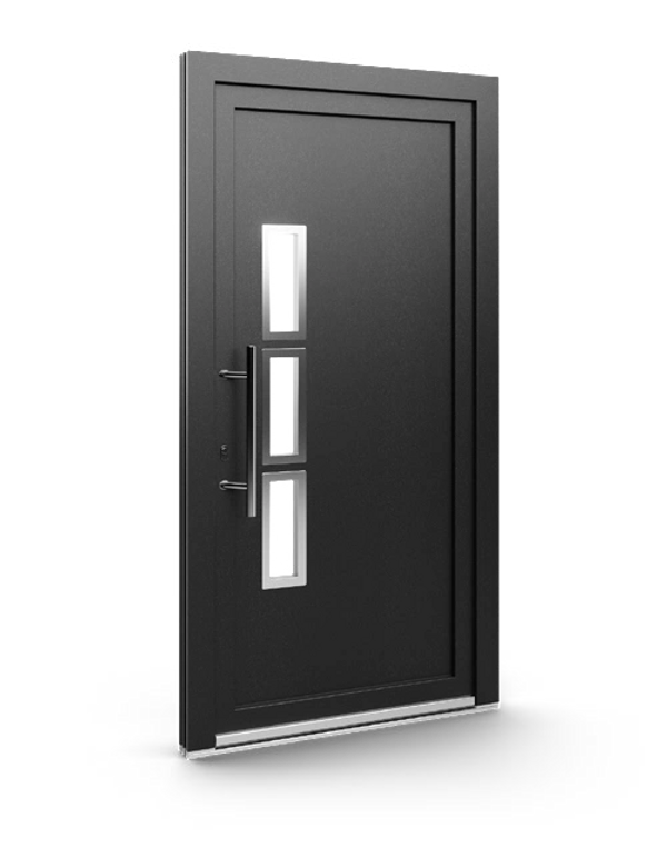 Met zijn 82mm vleugeldikte drievoudige dichting en standaard drie dagsluiters behoren onze voordeuren tot de best isolerende op de markt.